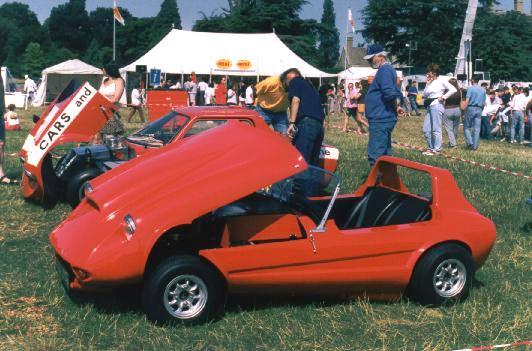 Top left: Making a rare appearance at a show, this Biota (along with a GTM) was on display at Mini In The Park at Cornbury Park, Oxfordshire on August 16th, 1998. other photos: This then newly restored example is seen with its owner, Martin Hockley (lower right) from Redhill, at the Brooklands Mini Day on May 28th 2004. Martin has owned the car for 14 years. The last two photos show the car on the famous banked track under the Members’ Bridge. (photos: R. Porter, text G. King) Official Biota web site (temporary URL) |