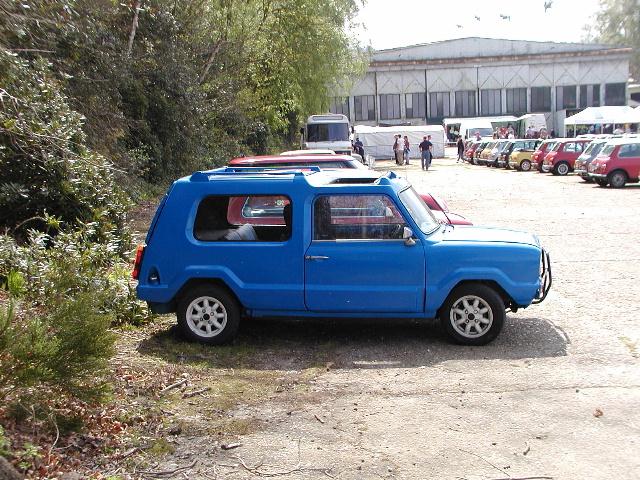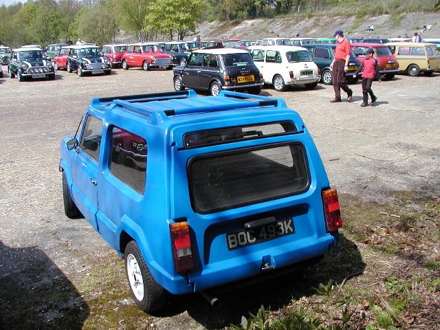 This rare example of a Minus Maxi is seen at the Brooklands Museum on 21st April 2002. Mini doors are used but with additional fibreglass trim panels.