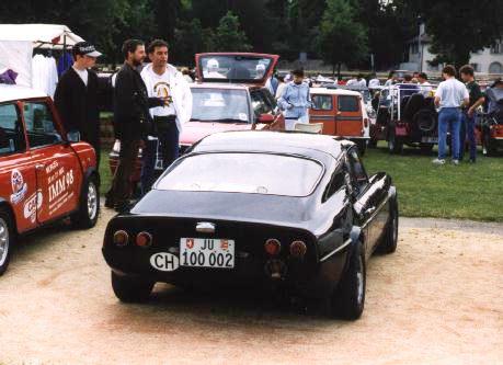 Left upper and lower: Believed to be the only left hand drive model produced, this Swiss-owned Unipower GT was spotted at the International Mini Meeting at Morges in May, 1998. (photos: R. Porter) Right upper: Two Unipowers photographed by Malcolm Asquith in 1977. Right lower: Ferg Ranson writes: “I was perusing your MiniMarcos site and came across the 'Alternatives' list. As an ex-GTM owner and current Libra builder I had to check out the Unipower entry. I knew I had a good shot of one and have spent about an hour finding it in case you would like to use it. I took it at Hindhead in 1985-86 and it's the nicest Unipower GT I've ever seen and as a bonus there's another in the background!” Thanks Ferg - well worth the time spent! I just wonder if those cars are still in the country as so many got exported to Japan. Now (2009) I've received this from Andrew Lee: “I thought I'd just drop you an email to let you know who built and owned the rather nice red and silver Unipower. It was actually my father, Mr. Simon A. Lee of Salisbury! Some people may know of him as the Mini-man from his days at Janspeed during the 80s and 90s. He is actually in the photograph too, if you look closely! He's the chap to the centre of the photo, wearing the green sweater facing forwards. “I can remember the car as a child, particularly the gear stick mounted in the drivers side sill and the fact that the car was so low. Unfortunately he was forced to sell the car (to Japan I believe), to pay for less interesting things like a house and my education!” |
