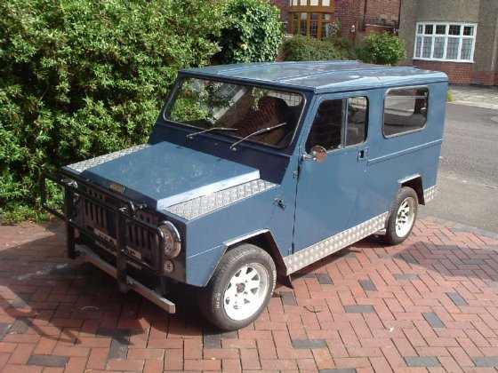 "I own a mini alternative not listed and I know very little about it, I enclose a picture of it and if you have ever seen one before or know something about it I would very much appreciate hearing about it! I bought it off a chap from Devon on Ebay in 2004, he said he thought about 300 were made by Whitby Engineering and it is supposed to be called a 'Mini/Whitby Warrior' apparently made in the early 1980s but registered on a 1968 plate! It sat festering in my garage until six weeks ago when I decided it must go back on the road! I think the previous owner really went for the baby defender look with all the chequer plate, engine is a standard MG metro, metro turbo brakes, its a very practical little oddity!" Thanks James. We had the Whitby Warrior on the list, but no picture until now. The 1968 plate probably came off a donor vehicle though obviously it's been updated a bit since the original build. "Baby Defender" is a good description! The second photo was taken when the Warrior was spotted by your webmaster at the Stoneleigh Mini+WV Show on 8th April 2007. (Photos: James Flynn, Richard Porter) |