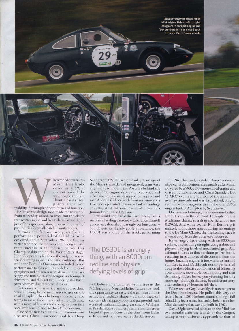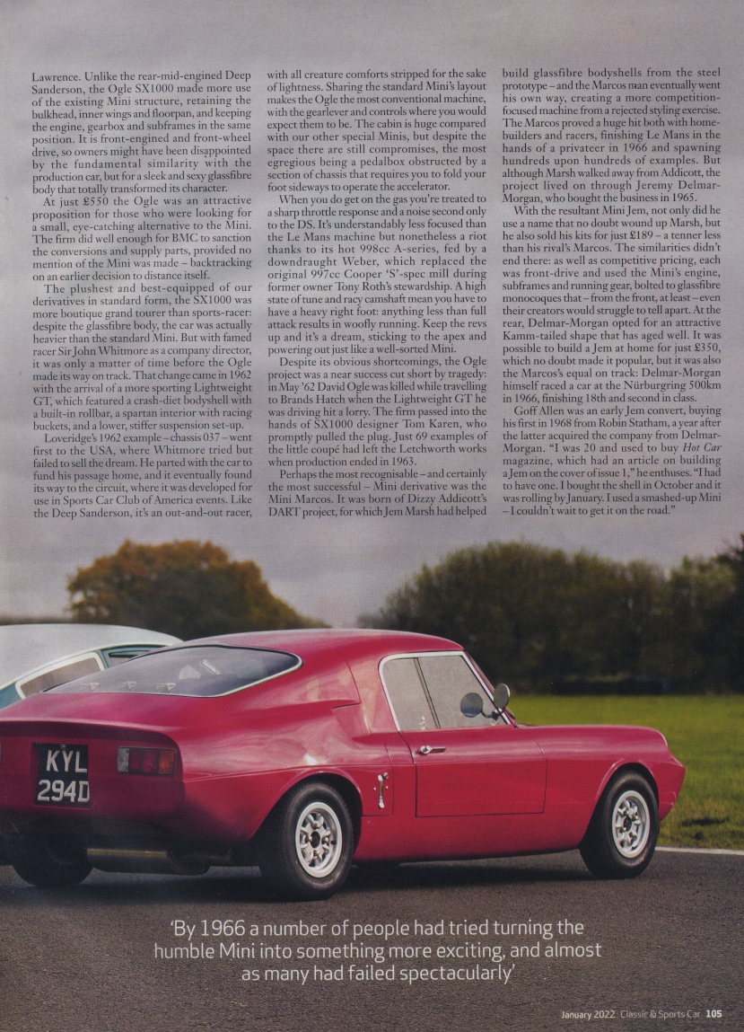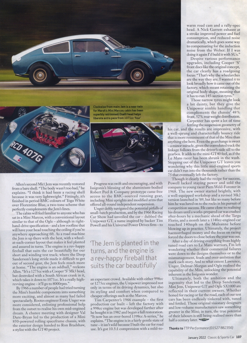 Featuring Goff Allen’s Mini Jem Mk.1 as well as the Unipower GT, Deep Sanderson 301 and Ogle SX1000