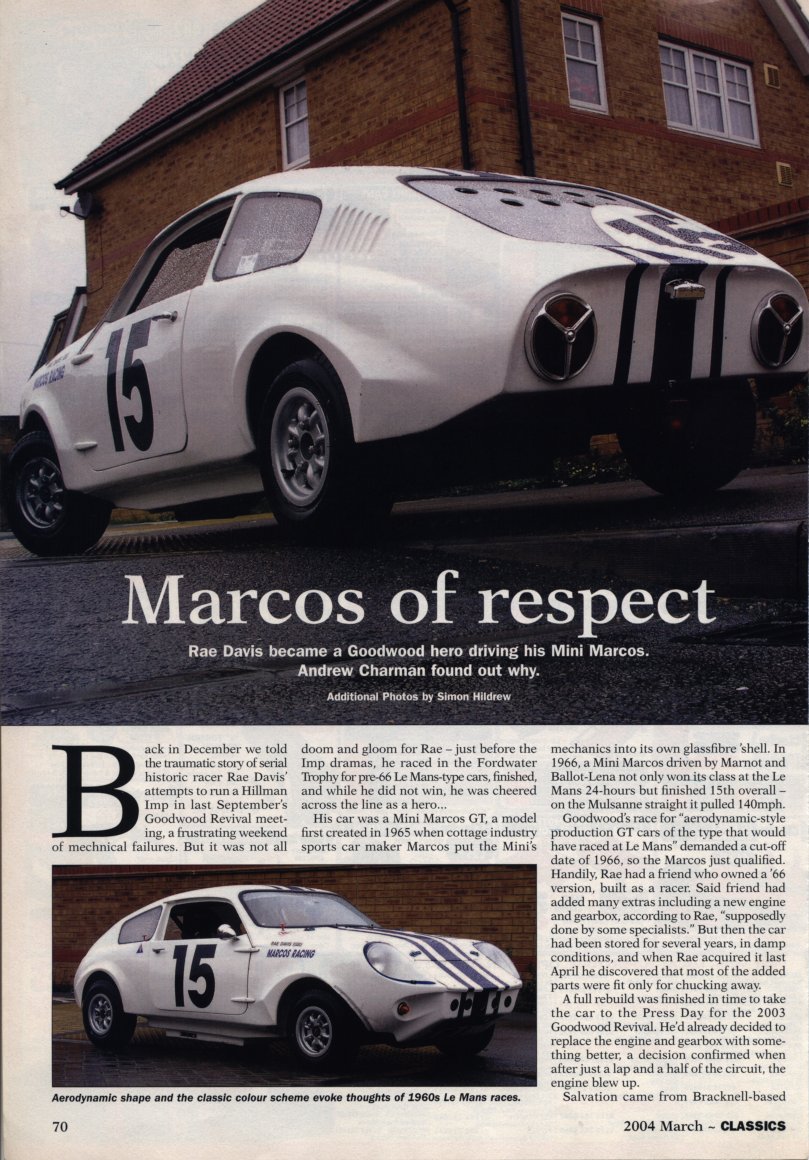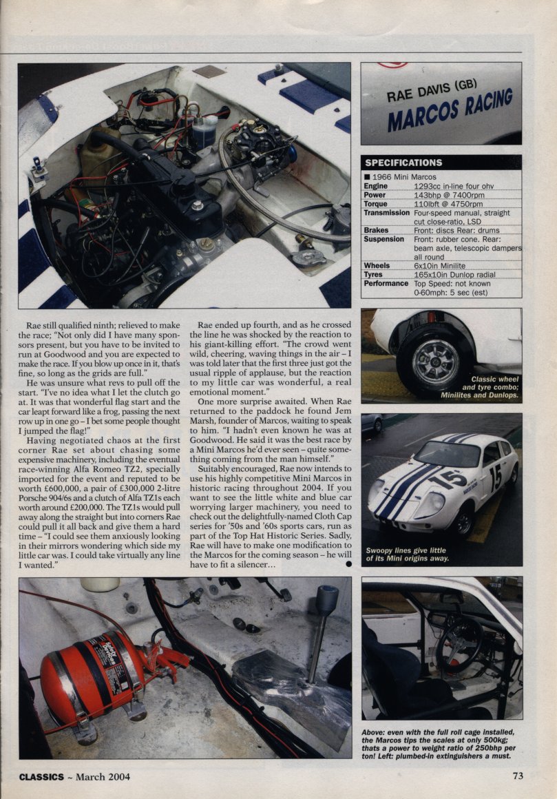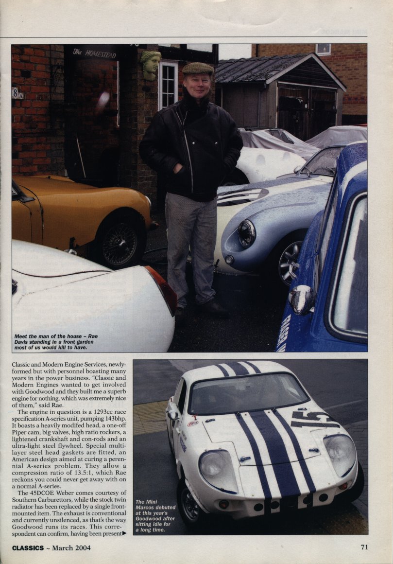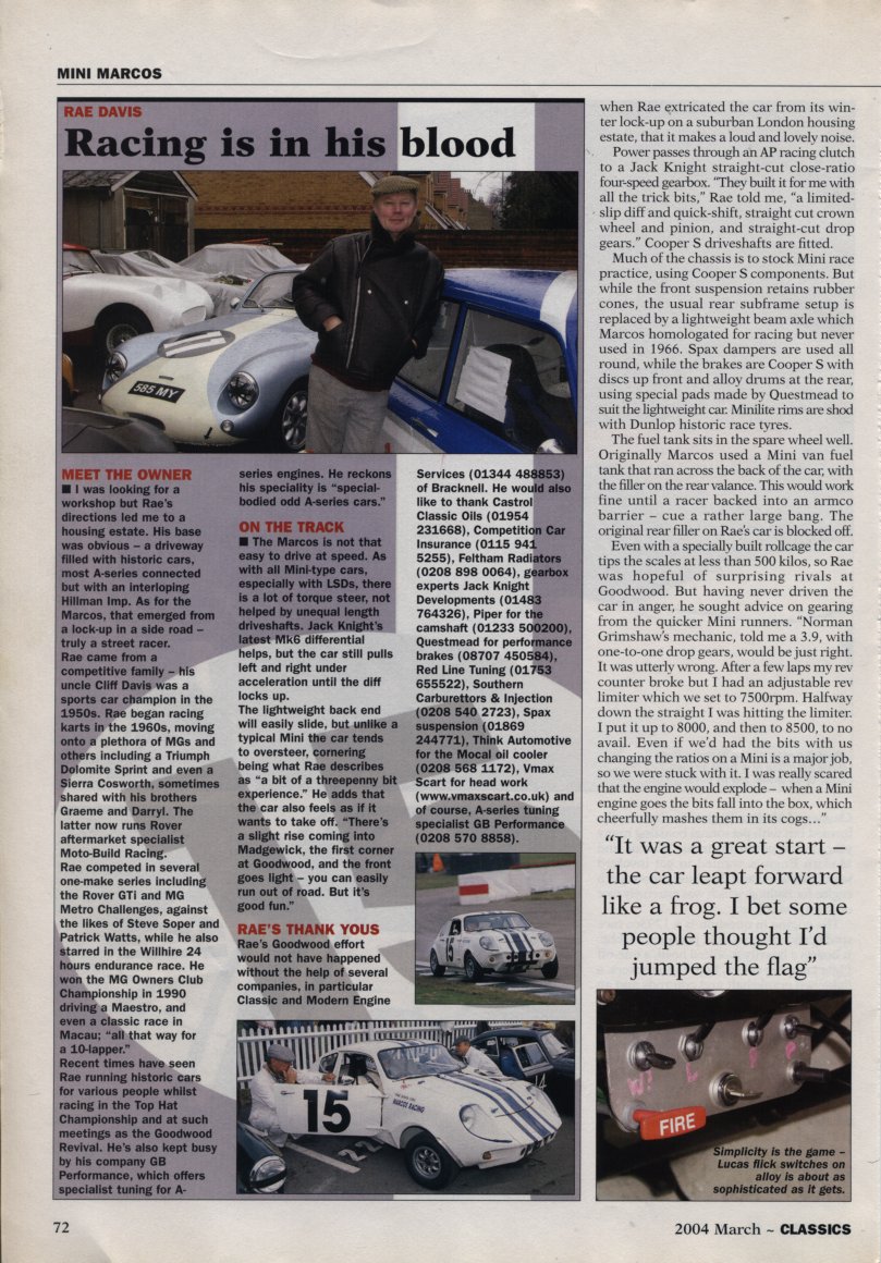 Goodwood hero Rae Davis and his Mini Marcos Mk.III.