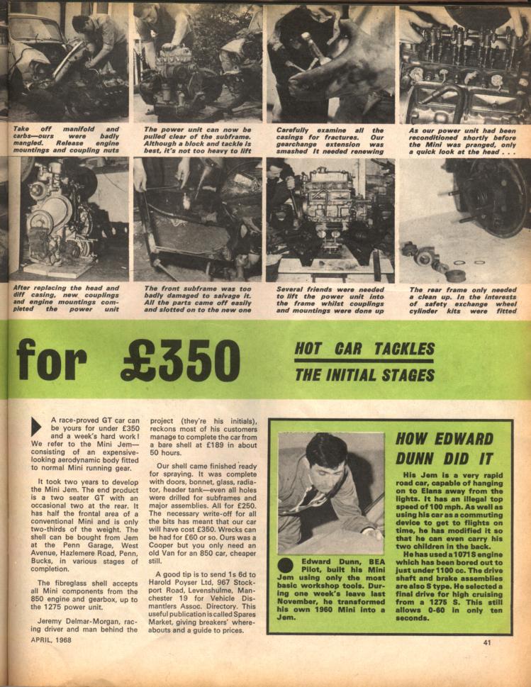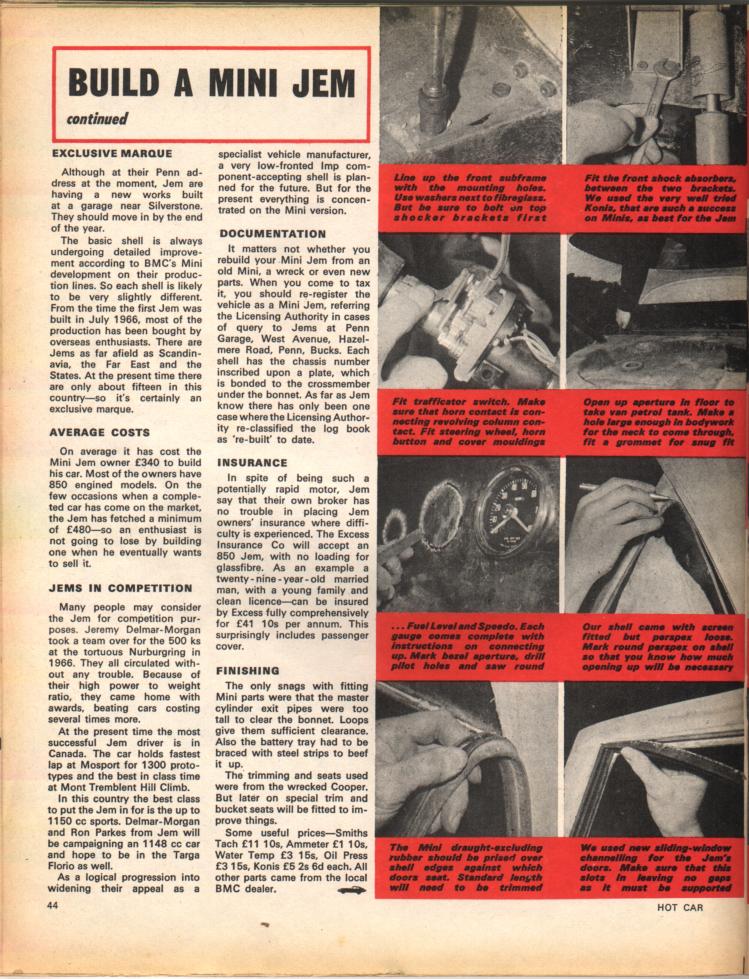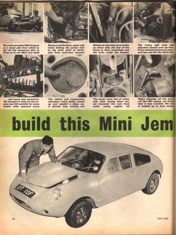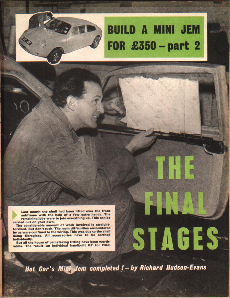 Off to a flying start! The new Hot Car magazine leads it's first issue with a Mini Marcos and starts a two-part feature by Richard Hudson-Evans on building a Mini Jem.