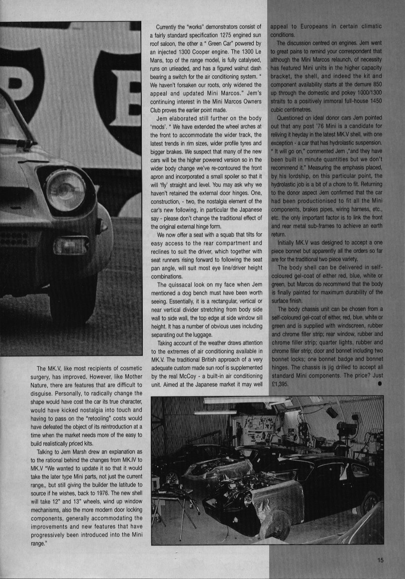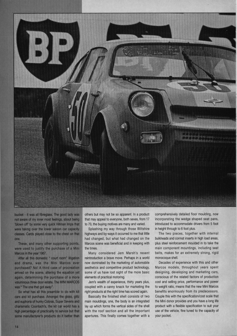Kit-Car Magazine, July 1992 Mini Marvel Peter Cahill talks to Jem Marsh about the history of the Mini Marcos. Kit Car Magazine Kit Car index | Cuttings Last updated 21st February, 2013