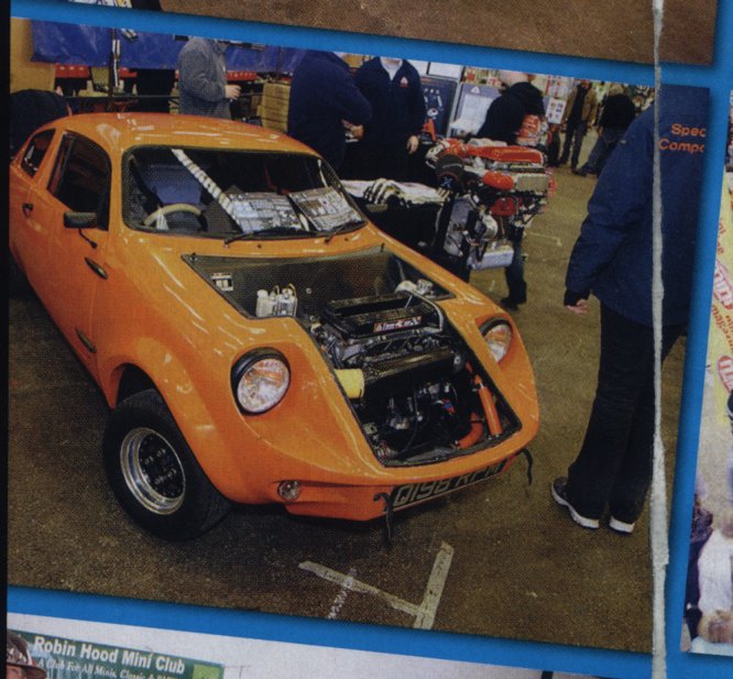 Part of the preview for January’s Mini Fair at Bingley Hall showing Matthew Payne’s Mini Marcos Mk.IV, DH8411, with a somewhat non-standard power unit. This was presumably at the 2012 show.