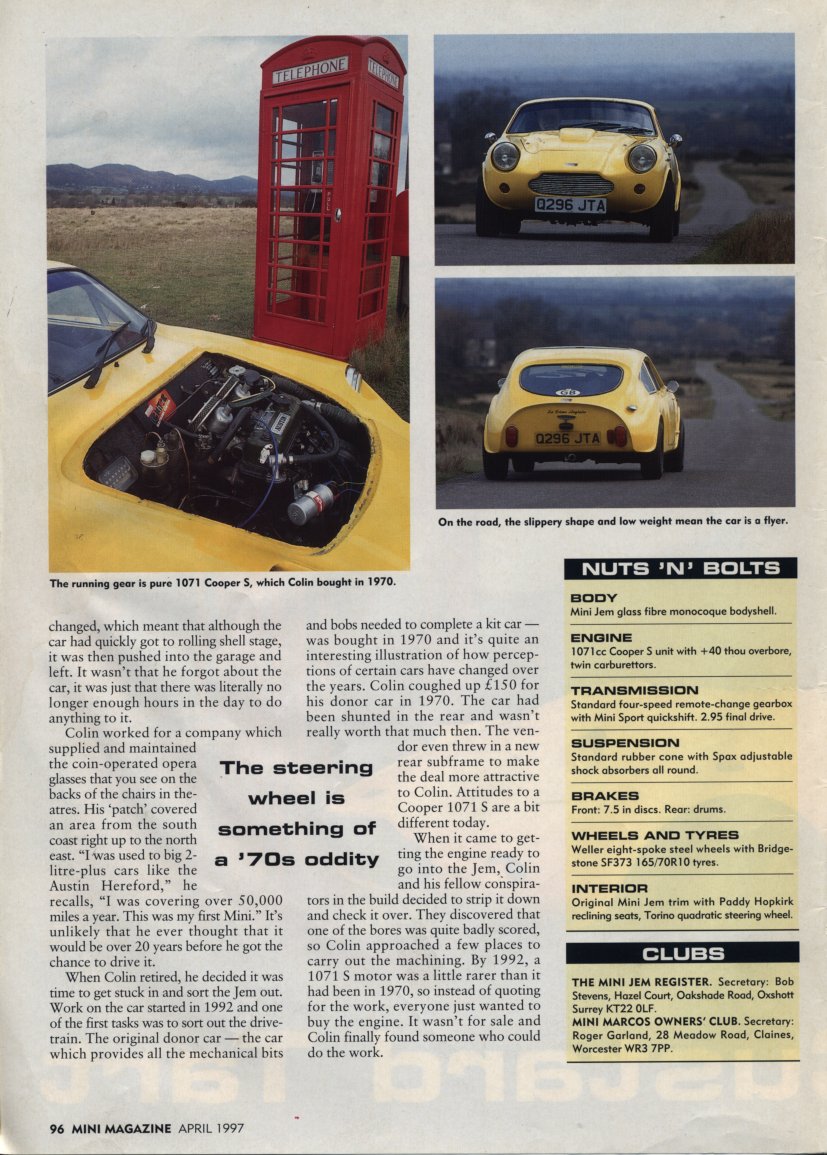 Gerard Hughes investigates Colin Hedgecock’s (now Richard Porter’s) Mini Jem Mk.2, RS M2 1127.