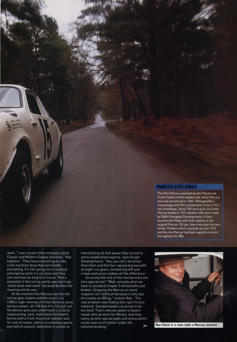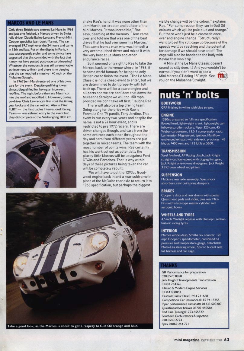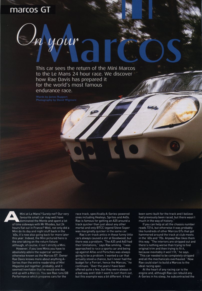 James Ruppert covers Rae Davis’s preparations for the 2004 Le Mans Classic in Mini Marcos Mk.III MM 7216.