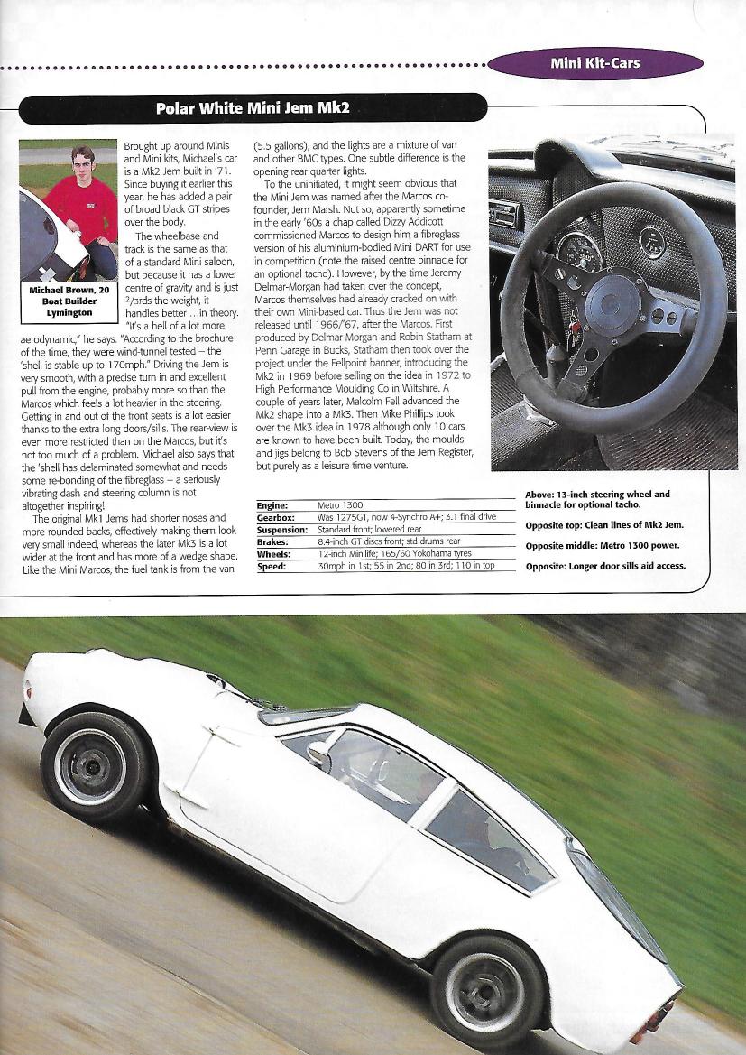 Featuring Dean Robertson’s Mini Marcos Mk.I, Mike Brown's Mini Jem Mk.2, Keith Rose’s Mini Marcos Mk.III and Roger Garland’s Mini Marcos Mk.V