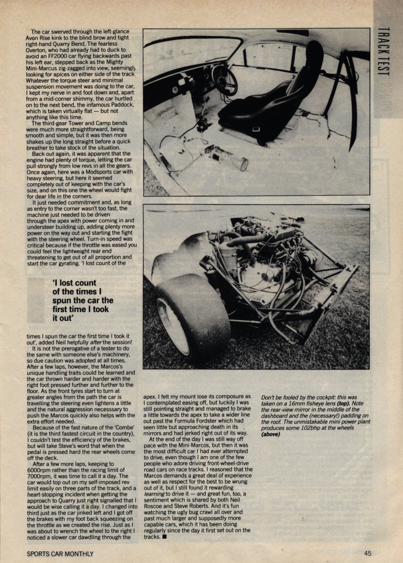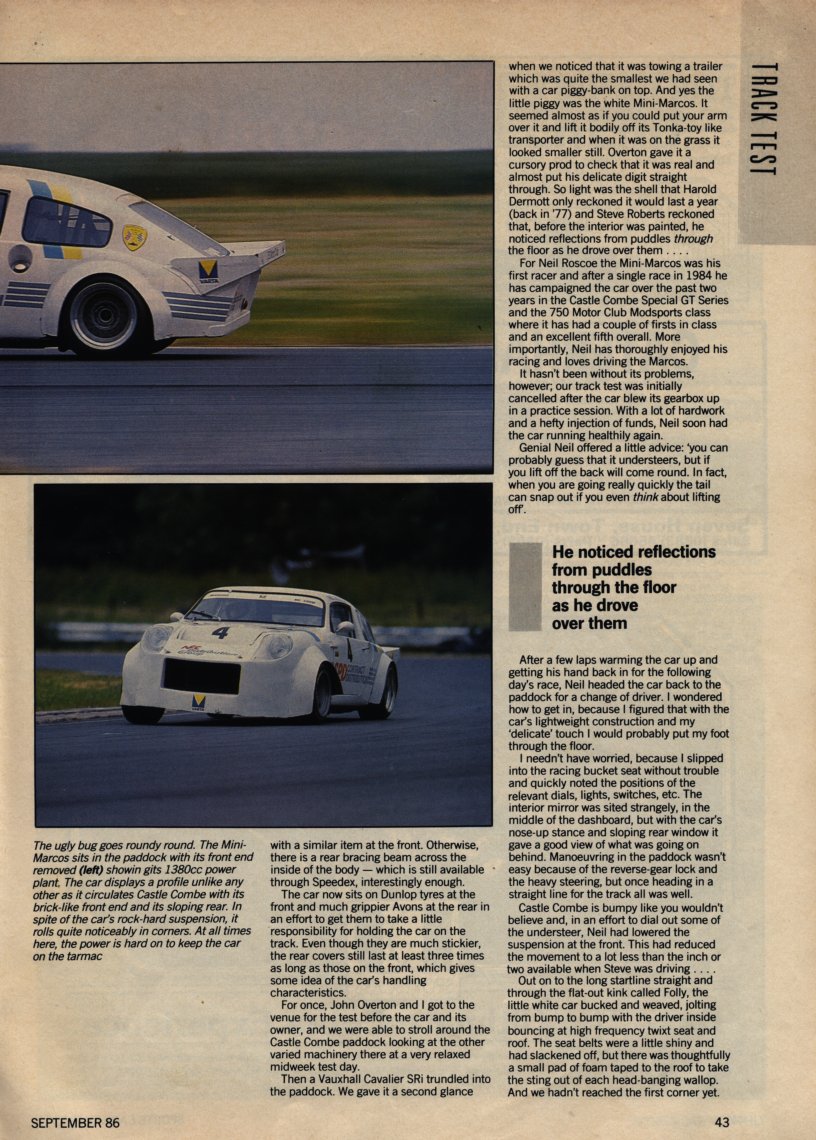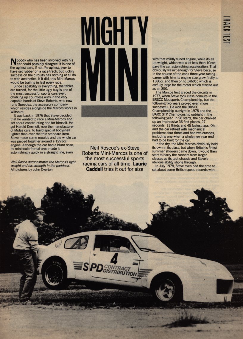 Laurie Caddell tries out Neil Roscoe’s ex-Steve Roberts TransXL Mini Marcos.
