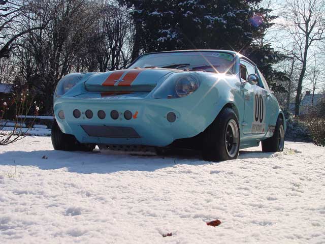 Left: The car is seen at Stoneleigh in 1997 when it was owned by Peter Mallinson and registered as Q831 GVU. Centre: When owned by Nicolas Calleweart the Mini Marcos glistens in the winter sunshine (4637 YL 59). (photo: N. Calleweart) Right: Now with the current owner the car has acquired a new personality! It is raced by Nicolas Pinon. |