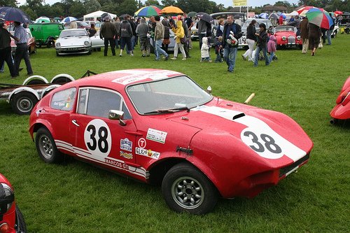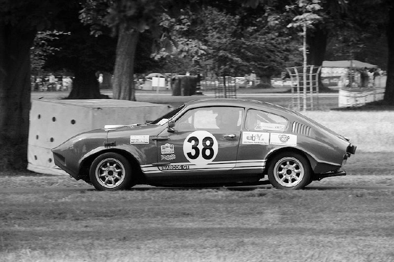 Neil Kilbane writes: "I was at the Phoenix Park Races on Saturday [12th August 2006] and out in the Historics was MI 1, the first of the cars built by Marcos Ireland. It used to be owned by David Millar but is now in the care of Des Quinn. The circuit is a triangular shape with a chicane on two of the sides, the third being the start finish straight. The Marcos circulated mid-field being held up by an MGB GT which had the legs on the straight with the Marcos catching in the corners, at one time they swapped a bit of paint in one corner. The race was won by some way by a Sunbeam Tiger with a 5ltr Chevy V8, although the fastest lap of 1:17 went to a 1600cc Lotus Elan, the Marcos finished 9th and had a lap time of 1:31." (photos 1 and 2 courtesy of "Maxi") The third photo was posted here on Flickr by "bmccoy". The car is on the Historic Racing Car Association's stand at the 2007 Irish Classic and Vintage Car Show run by the Irish Jaguar and Daimler Club at Terenure College, Dublin on 8th July. This is the largest and most prestigious show in the country. |