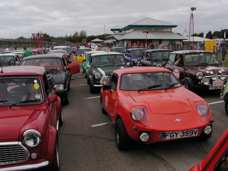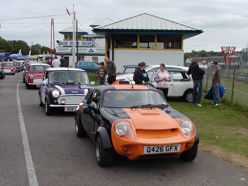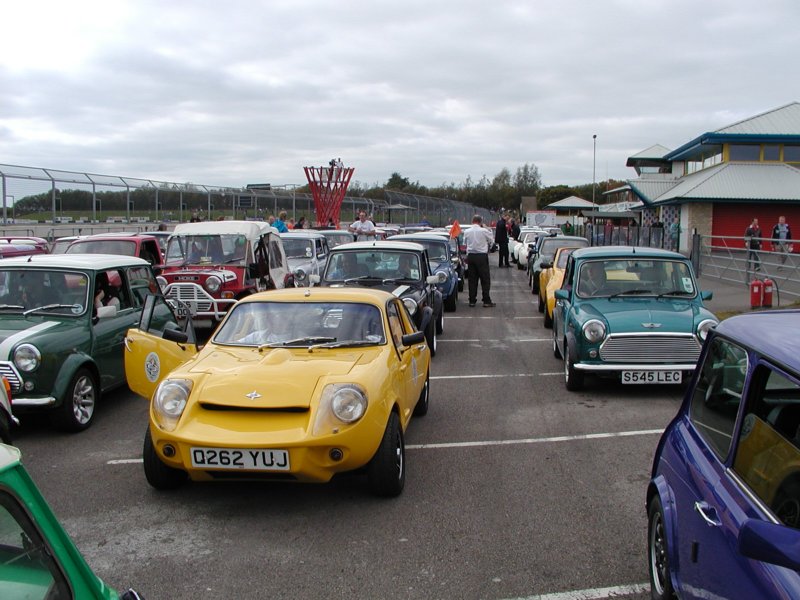 19: The club area, Andy Roberts‘s Mini Marcos, DH 8234 nearest.