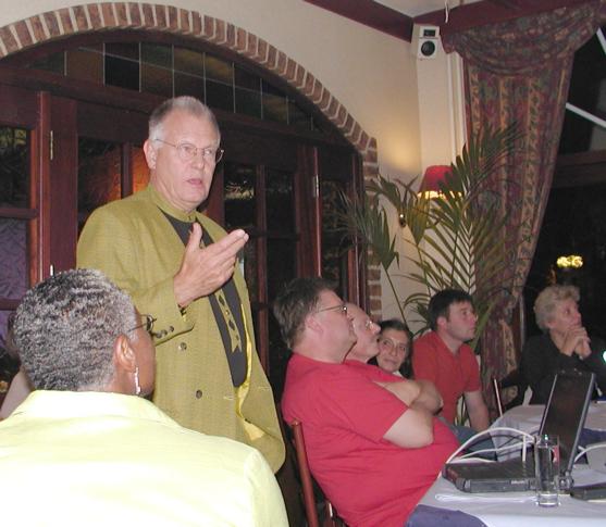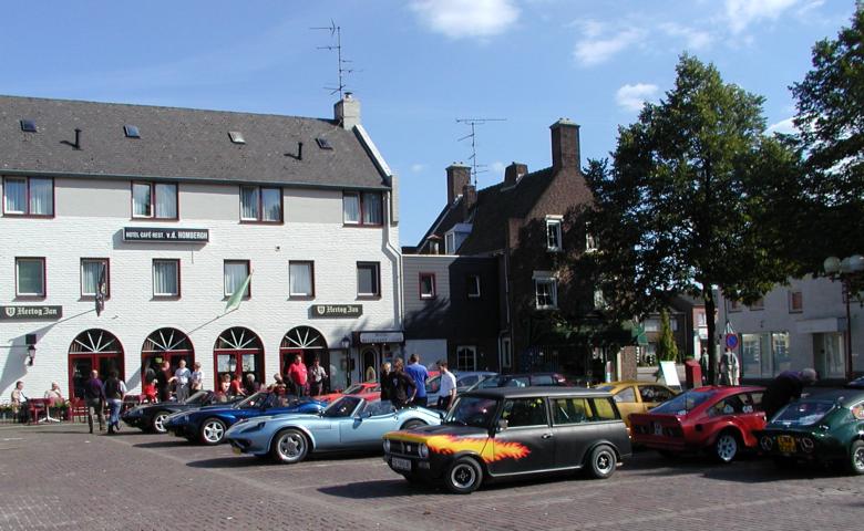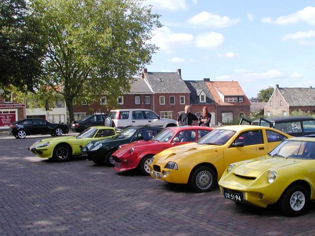 1-8. Arrival at Hotel van den Hombergh, Velden 5. Roger Crommentuyn's Mini Marcos Mk. III. 6. Erik Wijn's Mini Marcos Mk. IV. 7. Peter St. David-Jones's Mantula 8. Klaus Tweddell's Fastback "3 PLY". 9-15. Visit ti Hertog Jan brewery. 11. Roger Crommentuyn's Mini Marcos Mk. III. 12. Klaus Tweddell's Fastback. 13. Our guide explains what goes into the beer. 14. In the brewery. 15. Sampling the goods in the cellar. 16-18. Back at the hotel. 16. Maarten Krikken introduces John Sutton. 17. John Sutton talks about early Marcos days and Austin Sevens. 18. One of John's slides (see motorsnippets.com). |