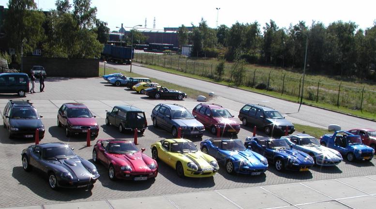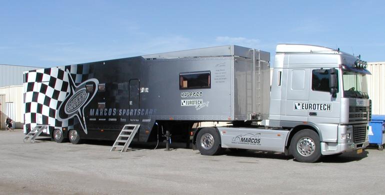 42-51. Arrival at the Eurotech factory in Venlo. 44. Roger Crommentuyn's Mini Marcos Mk. III (first in Mini Marcos class). 49. Raymond van der Klugt's Mini Marcos Mk. IV and Mike Perkins's Midas. 51. Erik Wijn's Mini Marcos Mk. IV (second in Mini Marcos class). 52-53. In the casting shop. 52. Mike Perkins talks to Eurotech boss Wim Noorman. 53. The mould for the scale model Mantis. 54-63. In the racing shop. 54. Mantaray road car and kit behind. 56-57. Wim Noorman's LM600 race car. 58-62. GTA Mantis race car. 63. Marcos spaceframe. 64. One of the transporters. 65. This should make the Marcos cars feel at home! 66. Maarten Krikken thanks our hosts and supporters. 67. Peter St.David-Jones receives first prize in the Big Marcos class. 68. Klaus Tweddell wins the Marcos Heritage Shield. 69, 70. Roger Garland presents Mini Marcos clocks to Maarten Krikken and Wim Noorman. 71, 72. Peter St.David-Jones's winning Mantula. 73, 74. Marjan Vanhammel and Mike Perkins take group photos from the canteen. 75. This space is reserved for one of their photos! 76. Waiting for the SeaCat at Calais. |