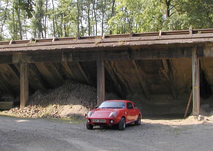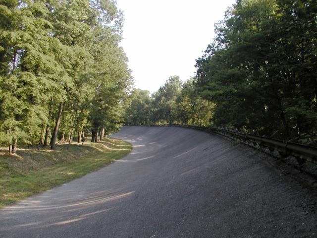 As you can see some of the original banking is still in existance though you can't drive on it. I wouldn't have enjoyed being a flag marshal in that tiny post at the top! |