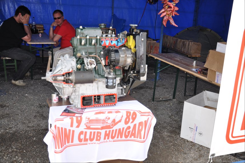 8: Mini Club Hungary stand with cut-away engine.