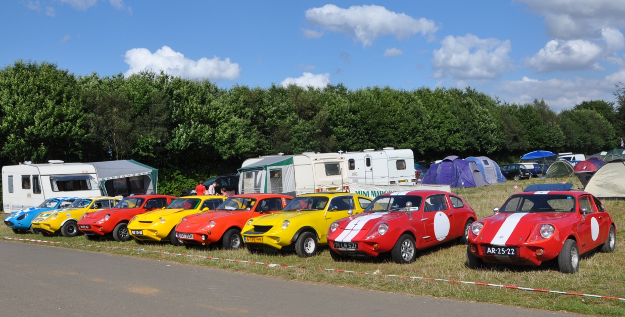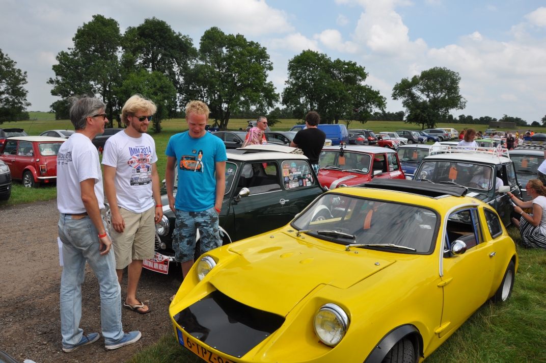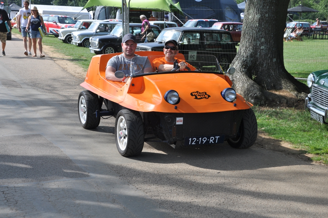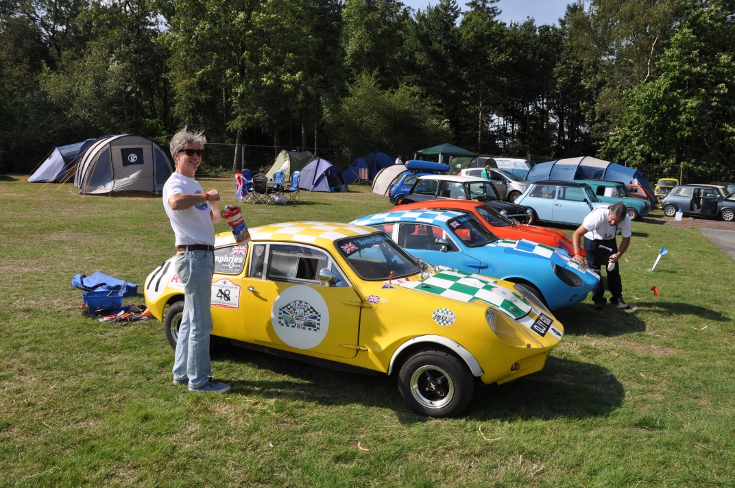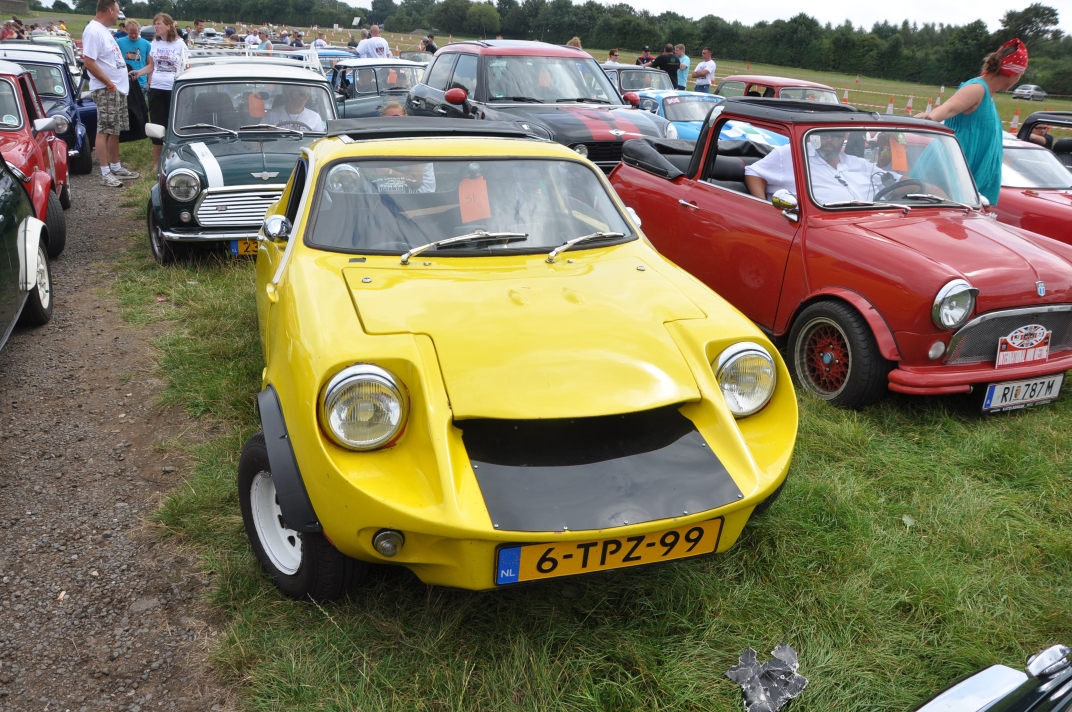 Mini Marcos Mk.4 DH8277 (Richard Porter). 2. Guy and Andrew do a spot of polishing. 3. Stimson Mini Bug. 4. Moke Club celebrating 50 years of the Moke. 5-6. Jimini Mk.2 in the exhibition hall. 7-10. Joost van Diën’s Mini Marcos Mk.3, 7360. 11-12. Joost’s rocker cover racer. Artwork by Anne Nobels. 13-14. Mini powered half-size truck. 15. Eddie Darwinkel’s Midas. 16. Scamp Owners Club. 17. Mini fire tender from Denmark. 18-20. Guy Humphries at the loudest exhaust heat. 21-22, 54. Neil Kilbane’s Mini Marcos Mk.3 23-27. Queuing for the start of the drive-out. 23. Joost van Diën’s Mini Marcos Mk.3, 7309. 26-27, 55. Jouke Boersen’s Mini Marcos Mk.4 DH8323. 28. Mini traffic jam on the roundabout. 29-32. Badger’ Mount Cider Farm. 33. Neil Kilbane in his Mini Marcos. 34. Engine bay of Neil’s car. 35-40, 56. MMOC line-up on the Sunday. 41-44. Joost and Andrew go rocker cover racing. 45. German registered Midas. 46-47. Schmitt. 48-49. The Turbonator jet powered Mini and kart. 50-52. Wildgoose camper. 53. Gert-Jan and Deborah Westerveld and ??? (expected September) with Mini Marcos Mk.4, 8063. 57. Guy and Joost fixing the petrol filler pipe on 7360. 58-59. Neil Bayliss’s Mini Marcos Mk.4 (we did’nt see Neil). | |||||
