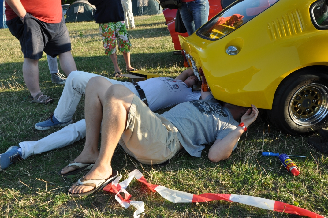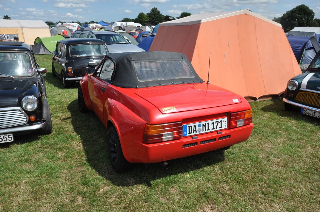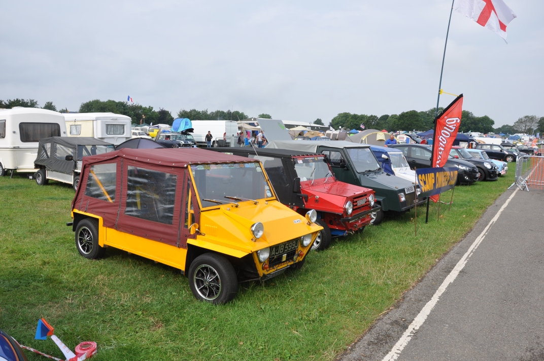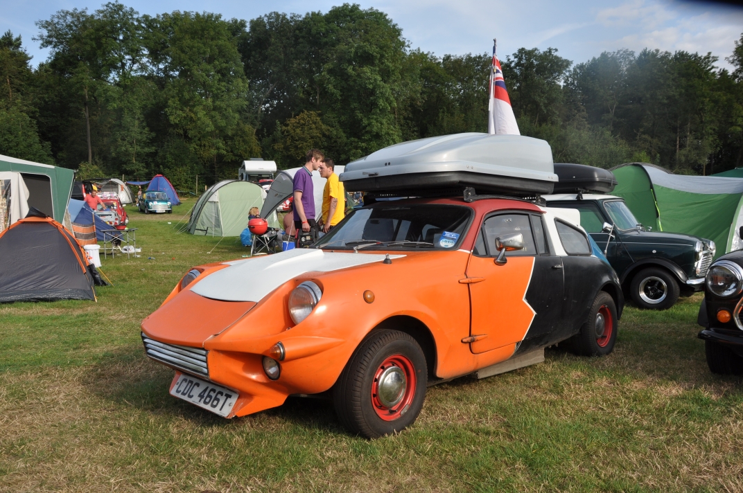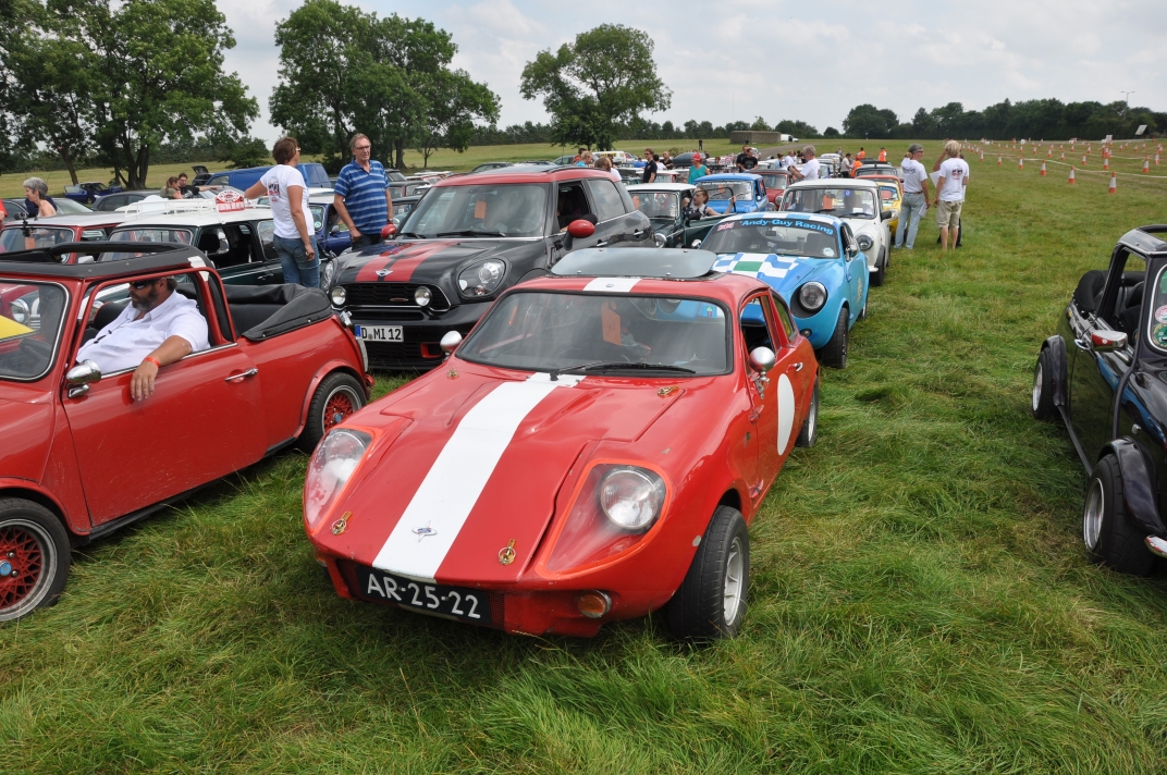Mini Marcos Mk.4 DH8277 (Richard Porter). 2. Guy and Andrew do a spot of polishing. 3. Stimson Mini Bug. 4. Moke Club celebrating 50 years of the Moke. 5-6. Jimini Mk.2 in the exhibition hall. 7-10. Joost van Diën’s Mini Marcos Mk.3, 7360. 11-12. Joost’s rocker cover racer. Artwork by Anne Nobels. 13-14. Mini powered half-size truck. 15. Eddie Darwinkel’s Midas. 16. Scamp Owners Club. 17. Mini fire tender from Denmark. 18-20. Guy Humphries at the loudest exhaust heat. 21-22, 54. Neil Kilbane’s Mini Marcos Mk.3 23-27. Queuing for the start of the drive-out. 23. Joost van Diën’s Mini Marcos Mk.3, 7309. 26-27, 55. Jouke Boersen’s Mini Marcos Mk.4 DH8323. 28. Mini traffic jam on the roundabout. 29-32. Badger’ Mount Cider Farm. 33. Neil Kilbane in his Mini Marcos. 34. Engine bay of Neil’s car. 35-40, 56. MMOC line-up on the Sunday. 41-44. Joost and Andrew go rocker cover racing. 45. German registered Midas. 46-47. Schmitt. 48-49. The Turbonator jet powered Mini and kart. 50-52. Wildgoose camper. 53. Gert-Jan and Deborah Westerveld and ??? (expected September) with Mini Marcos Mk.4, 8063. 57. Guy and Joost fixing the petrol filler pipe on 7360. 58-59. Neil Bayliss’s Mini Marcos Mk.4 (we did’nt see Neil). | |||||