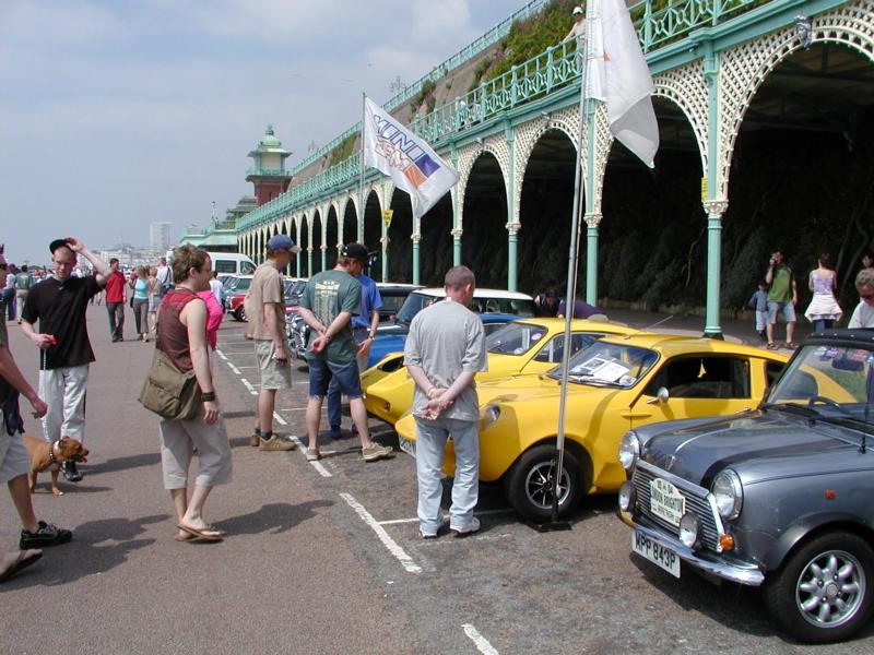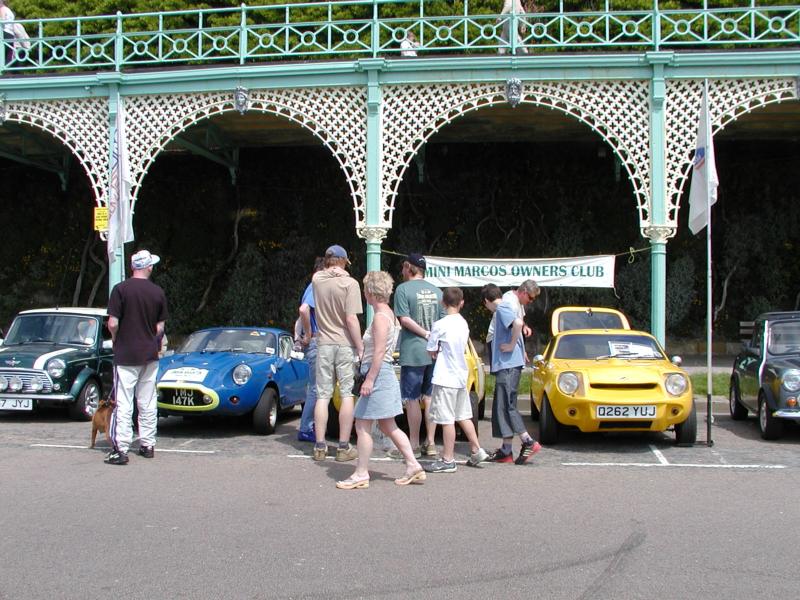 1-4 at Crystal Palace, 7-12 at Brighton 1. The Magenta we saw last year. 2-4. The assembled multitude at Crystal Palace 5. Our trio stops for refreshments at Andy Roberts's home 6. Andy's latest acquisition (D & H Mk.IV) undergoing restoration. 7-9. Our club line-up of (l-r) Richard Porter's Mini Jem Mk.2, Guy Humphries's Mini Marcos Mk. III and Andy Roberts's Mini Marcos Mk. IV. 10. The view from Black Rock - Minis as far as the eye can see! 11. Same pair of Mk.I Scamps as last year. 12. A rare if somewhat rusty Andersen Cub. (Photos: R. Porter) |