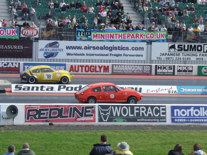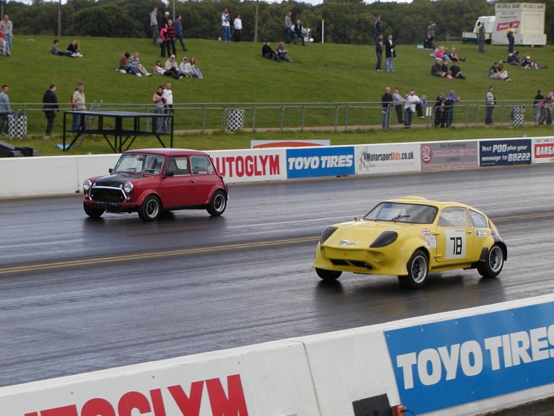 5. Allan sees off a Mini on the drag strip. 6. Allan and Richard on the strip. 8. GTM Owners Club stand. The red coupé has a Honda VTEC engine. |