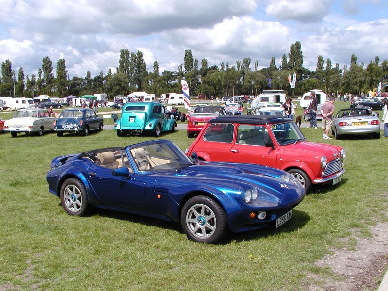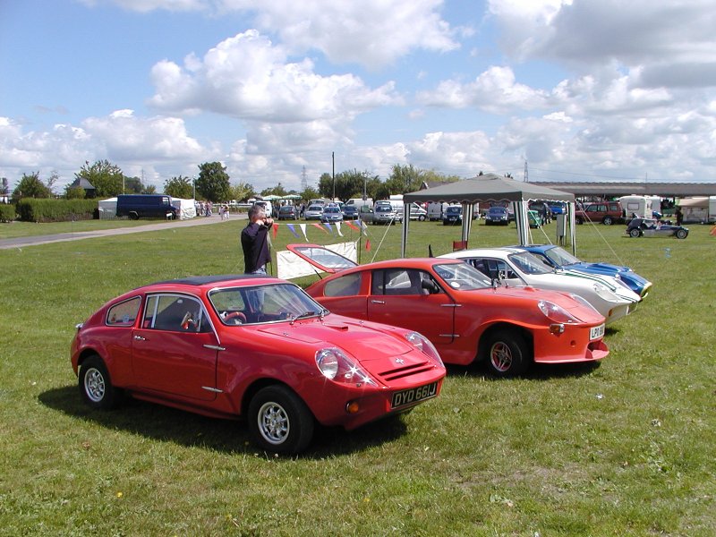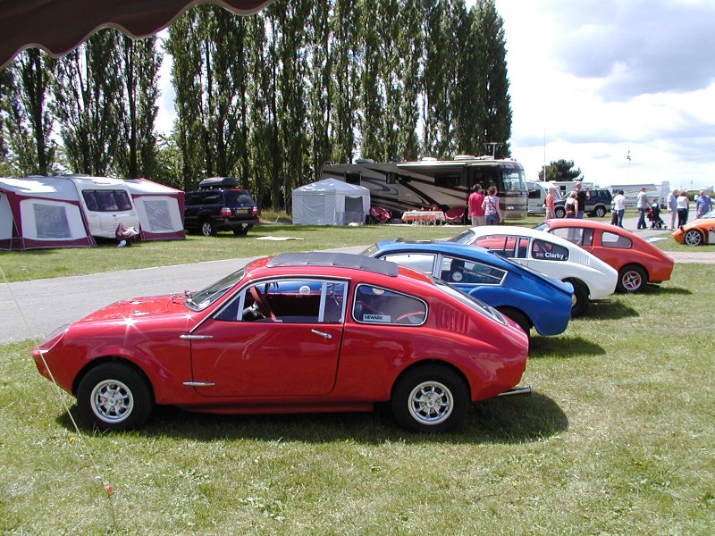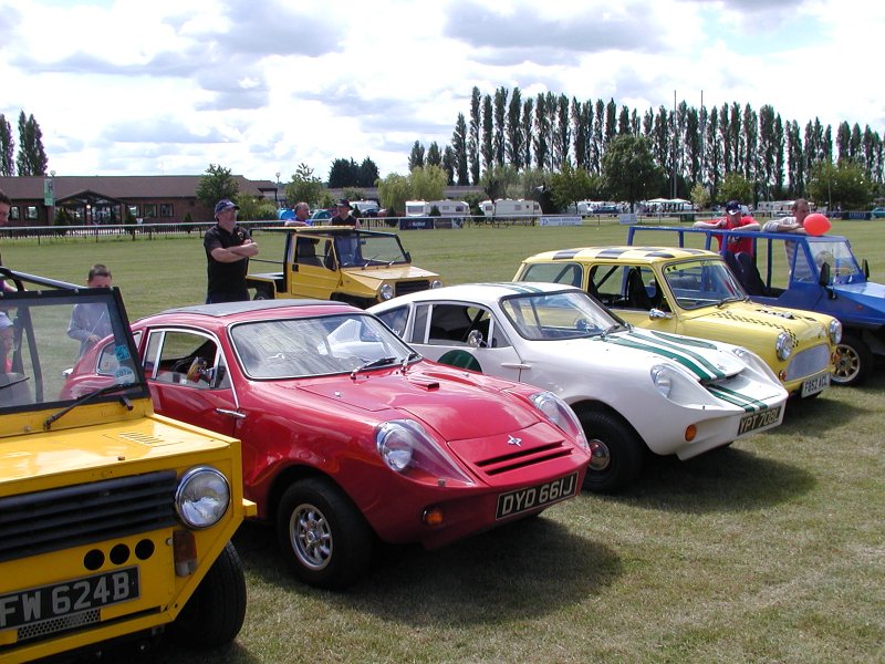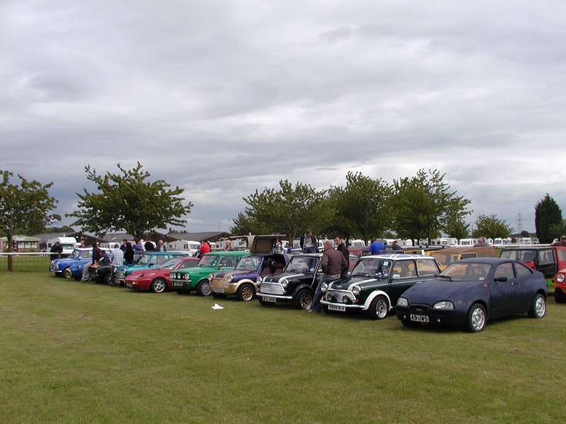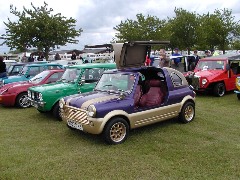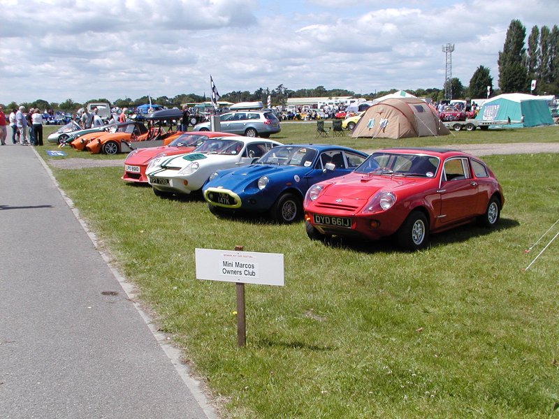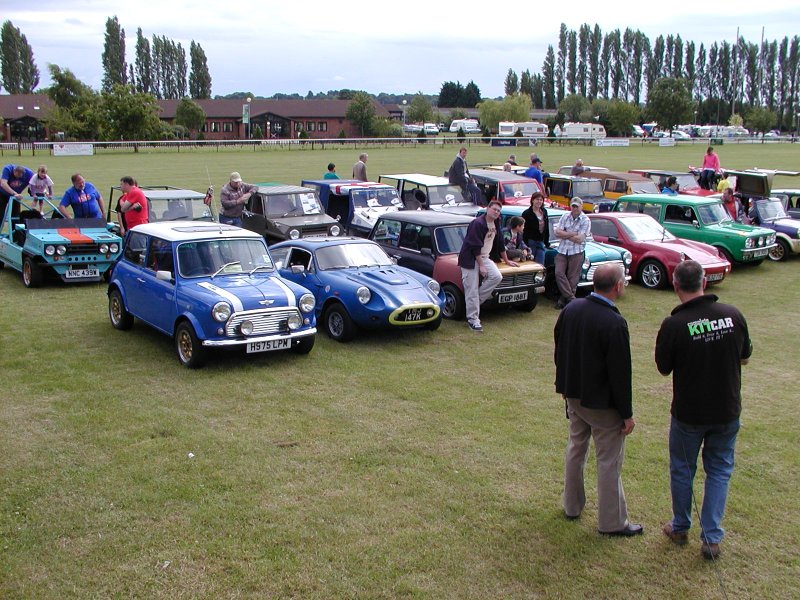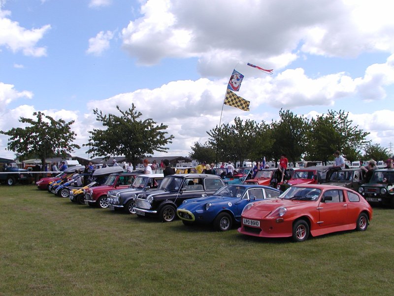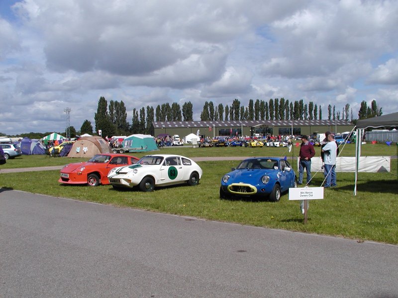 2. Line-up of Mini variants (with what looks like a K-Series Midas). 3. Mini kits celebrate 50 years of the Mini. 4. Club stand on Saturday (Cars of Mike Weaver, Chris Clarke and Richard Porter). 5. A superb Piper in the classic section. 6. Mantara Spyder. 7. Marcos Coupé (3-litre, iirc). 8, 12, 13. Club stand on Sunday (Howard Plant's Mk.III nearest). 9 - 10. Mini variants line-up on the Sunday. 11. Mike Weaver being interviewed. |