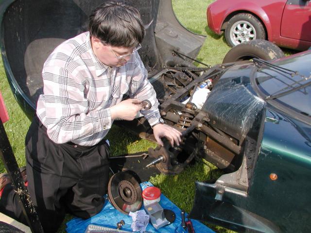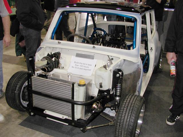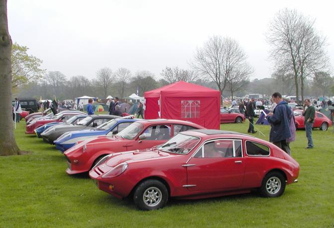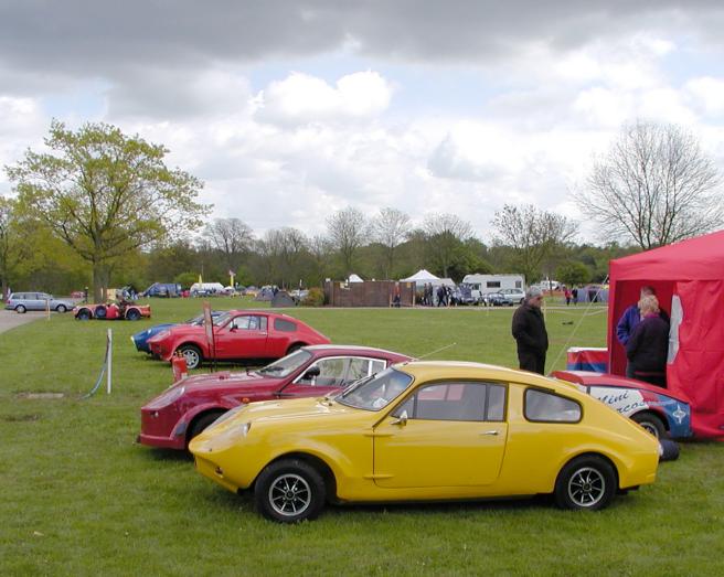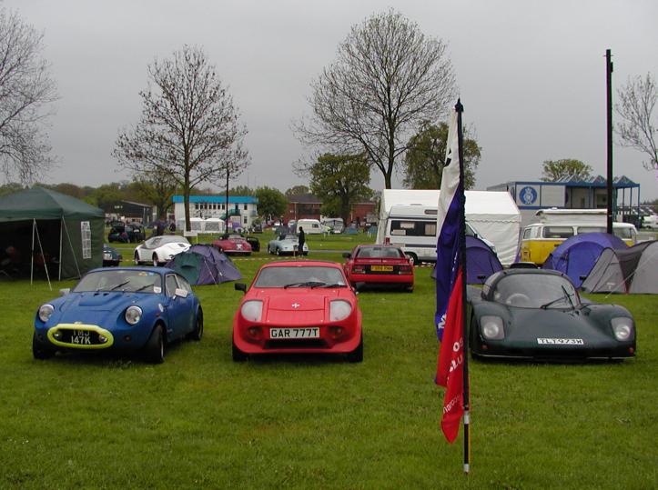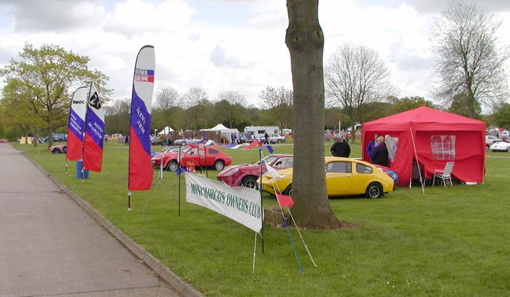 2, 3, 6: Club stand on Sunday. 4, 5: Martyn Trowton's Mk. III Mini Marcos. 8: Marcos LM500 on the Spax stand. 9, 10: Z-Cars' bike-engined Mini kit. 11: Ian Hayward and Roger Garland at the AGM. 13: Geoff King examines an Ultima wheel bearing. 14: Monday morning rain. 15: Mike and Allan Brown load up Allan's Mk. IV Mini Marcos.. 16, 17: The club stand on Monday, Andy Roberts's Mk. IV Mini Marcos nearest. (Photos © 2004 Richard Porter) |