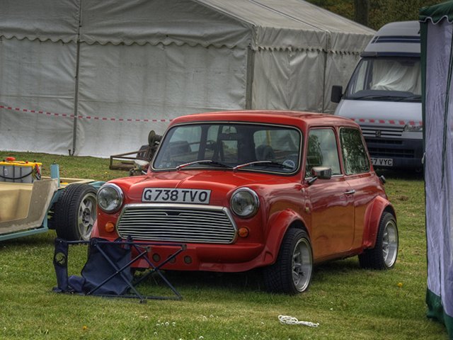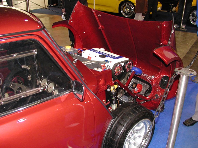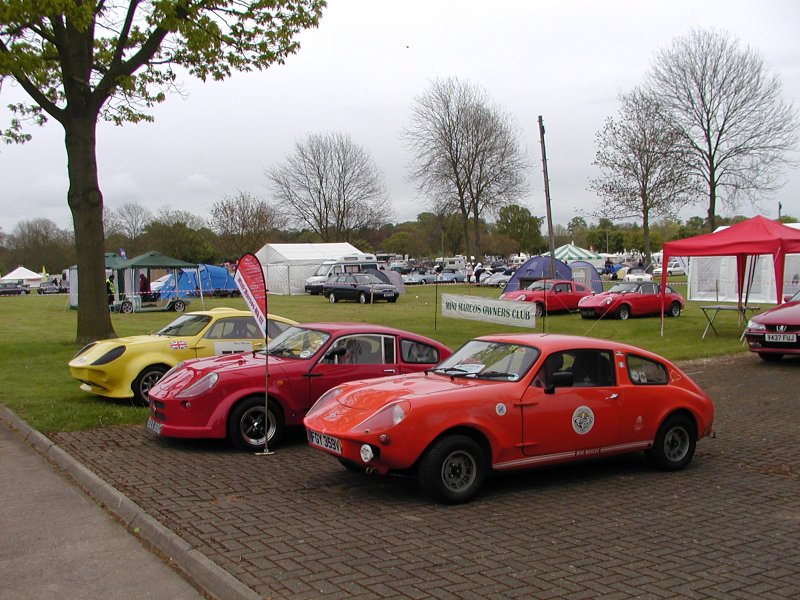 Row 2: Vauxhall engined Mini from Extreme Sportscars; bike-engined Minus. Row 3: Leccy-tech Midas (less batteries); club stand on Monday - a bit quieter, but we're augmented by four Marcos coupés. (Photos: R. Porter) Bottom: FRA Mini (“Frink”) More from “Frink” on Flickr here and here. |
