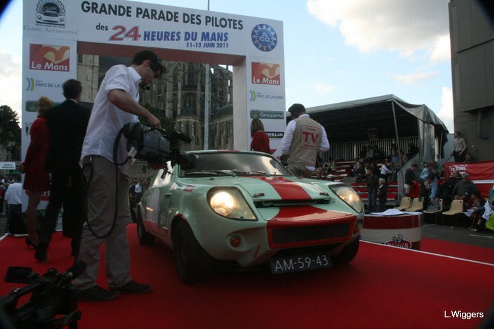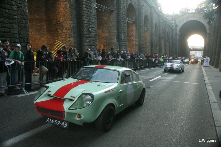 1-4: Eric Cettour’s Mini Marcos Mk.III no 7485 on a parade lap and (4) in the city centre.