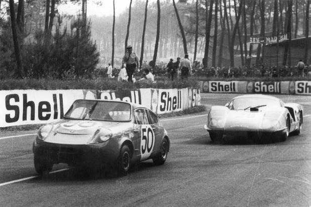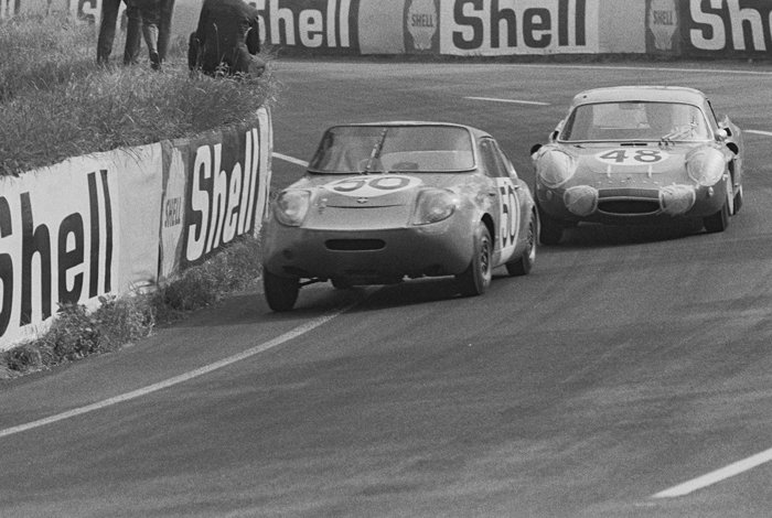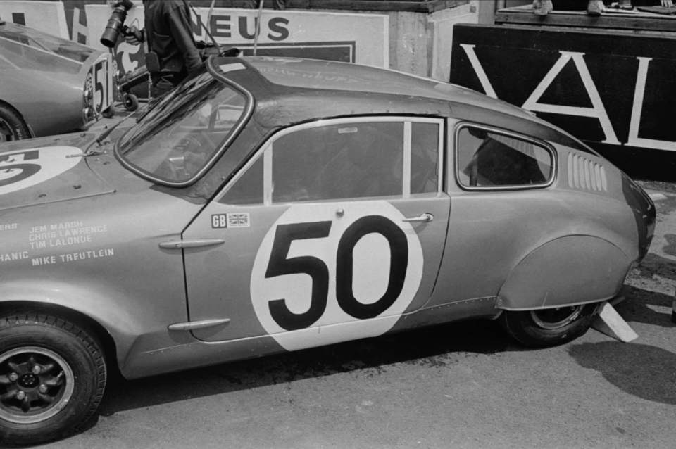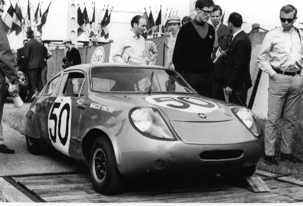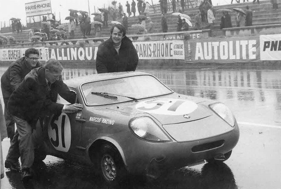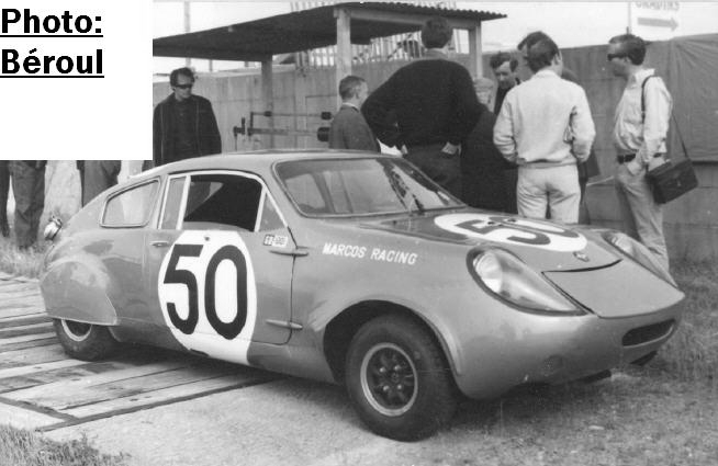 We understand that the car carried number 51 during testing but was renumbered as 50 for the race itself following the non-qualification of another entry. The second photo is noted as being taken in April 1967.The first photo comes from la ligne droite des hunaudières. The third photograph is by Douglas Armstrong. Rows 3 and 4: The streamlined Mk. III Mini Marcos was clocked at 141 mph on the Mulsanne straight at Le Mans before an oil pump failure put paid to its hopes of repeating the 1966 epic. Note the modification to the windscreen angle which was made after the French scrutineers had tried to exclude the car on the grounds that the windscreen was too low. They little thought that the team would modify the bodywork overnight! Row 5, 1 & 2 courtesy of Dave Friedman Collection. Row 6 left: a press photo showing the cars lined up in front of the pits. right: the same car under restoration in Bulawayo, Zimbabwe in 1997. It can be seen restored to mint condition in the Members' Cars section. Photos sourced by Stef Jones, Gérard Boulin, Tom Wiggers, Mike Kerry, Christian Baufi, Axel Desjardins, Neil Kilbane and Richard Heseltine. |
