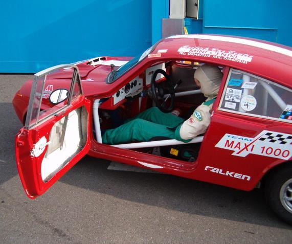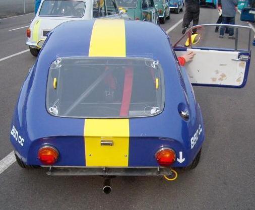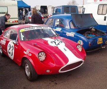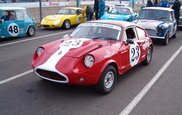 Jean-Pierre Cochet-Terrasson writes (with minor changes): "Claude Cassina won the 2003 French TROPHEE MAXI 1000 Championship with his Jem (left), and he won all the races since the beginning of the 2004 season. In fact he painted his Jem in red (white & blue before), fitted a 1071cc full race engine, and sevelopped the handling. "The 'TROPHEE MAXI 1000' (for 1000cc...) was created 6 years ago to allow modest racers and cars to compete in two classes: up to 850cc and up to 1000cc.: Minis, NSU, Dauphine, 4CV(!), Fiat Abarth 595 SS and +... ONLY in historic races. Cars must be pre 1971. "Three years ago, the French Federation of Auto Sport (FFSA) decreed that the 'TROPHEE MAXI 1000' had to accept cars up to 1150cc. This introduced a new dimension (cost increasing) as the 1071 Cooper S arrived with all the Works options: SC ratio gear box, LSD, 45 Weber, Carillo connecting rods and Viseco pistons etc. So for winning today, you need a 1071 S. The Mini Cooper S are not far behind Claude. They are heavier, but easier to pilot (better position and viewing). So some Marcos and Jem were entered in this 'TROPHEE MAXI 1000', (they did not want to accept my LWR JEM(!!!) because of removable front end and rear suspension (Speedex type)... which I wanted to bring with a 998 and not even a 1071 that I could not have afforded. "Today, new challenger cars are arriving: Ginetta G15 and NSU 1000 TTS. "This trophy, which was laughed at by the race establisment at the biginning, who considered it a 'ridiculous-proletarian formula' (4CV, BMW 700S...), is now one of the spectator preferred races... Popular cars are still in the race: 4CV 'Le mans' delivery, Dauphine "1093", and even two terrible 560 kg/70BHP TRABANT... but also JEM, Marcos, now one Cox GTM, G15, Honda 800S Racing, Alpine A110 1108 and Matra jets..." The Mini Marcos on the right won the 850cc class. The link on each picture displays a larger image. Images kindly supplied by J-P Cochet-Terrasson (some © Team Grente Associés) |